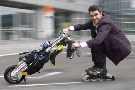 This motorized unicycle-motorbike speeds of up to 40 km / h and can be used as traction for any moving devices: from the man on roller skates to domestic small trucks